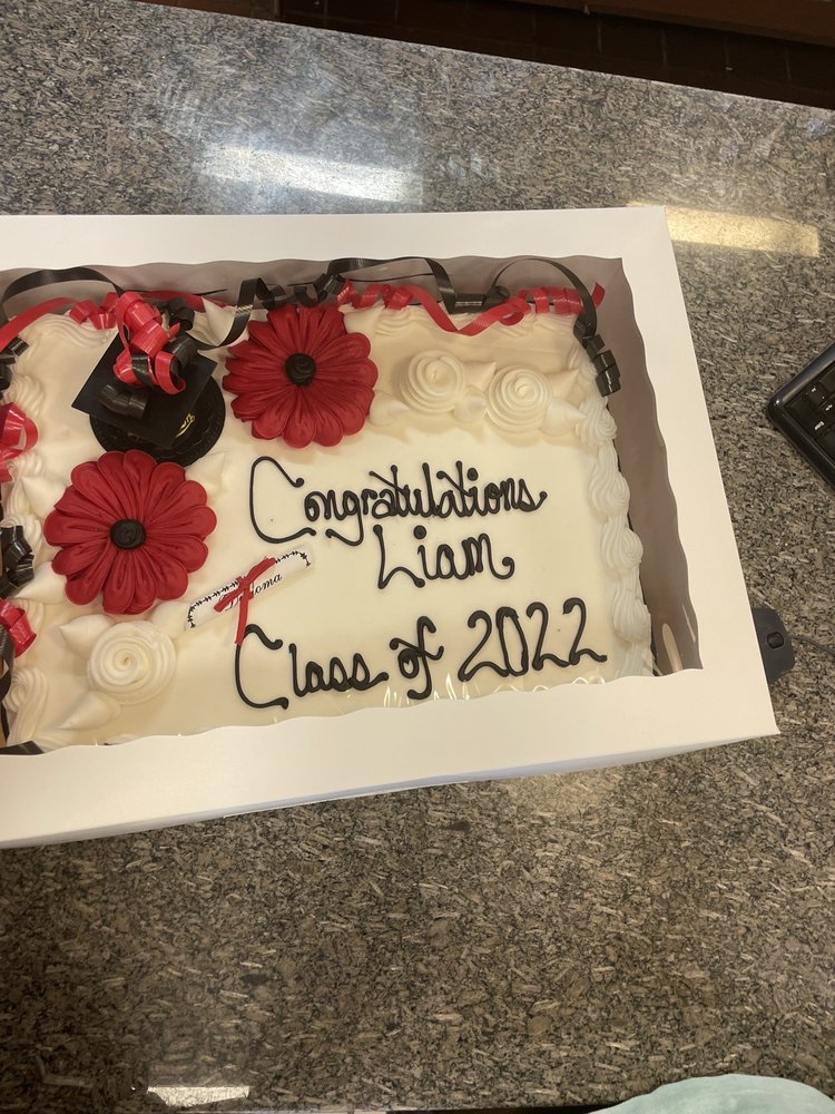 This delicious cake comes with two layers of yellow or chocolate cake, with white or colored white frosting. This cake will serve - people, depending on size of pieces you cut. We can write happy birthday, congratulations with a name on a ribbon and place it on top. Don't forget candles.If you require a customized cake for a future date, please call bakery and order.